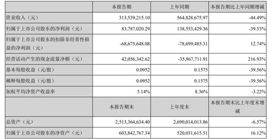 2021年上半年,景峰医药实现营业收入31,353.92万元,较上年同期下降44.49%;实现归属于上市公司股东的净利润8378.70万元,较上年同期下降39.53%;经营活动产生的现金流量净额为4205.63万元,较上年同期增加216.93%;基本每股收益0.0952元,上年同期为0.1575元;加权平均净资产收益率为5.14%,上年同期为8.36%。