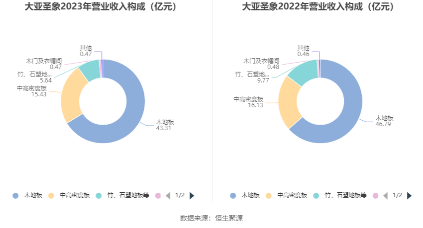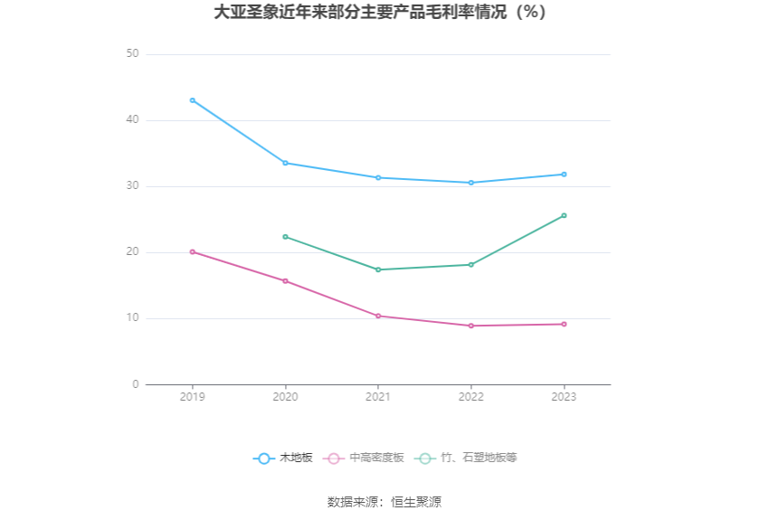 分产品看,木地板、中高密度板、竹、石塑地板等2023年毛利率分别为31.84%、9.17%、25.60%。