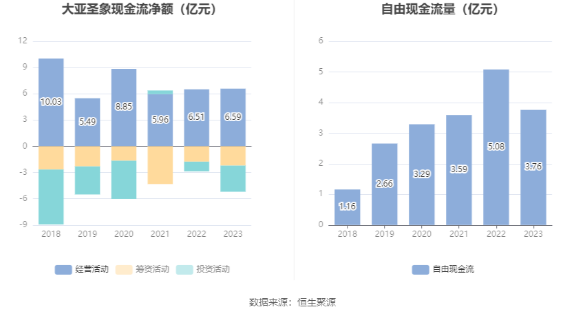进一步统计发现,2023年公司自由现金流为3.76亿元,相比上年同期下降25.99%。