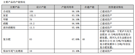 最新年报显示,泸天化合成氨、尿素、甲醇、复合肥年产能分别为104万吨、152.5万吨、70万吨和83万吨,这大致也决定了公司的基本盘。