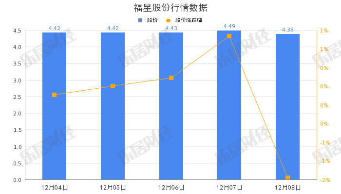 截至12月08日,福星股份(000926.SZ)股价收盘报4.49元,跌2.45%,总市值40.08亿元。