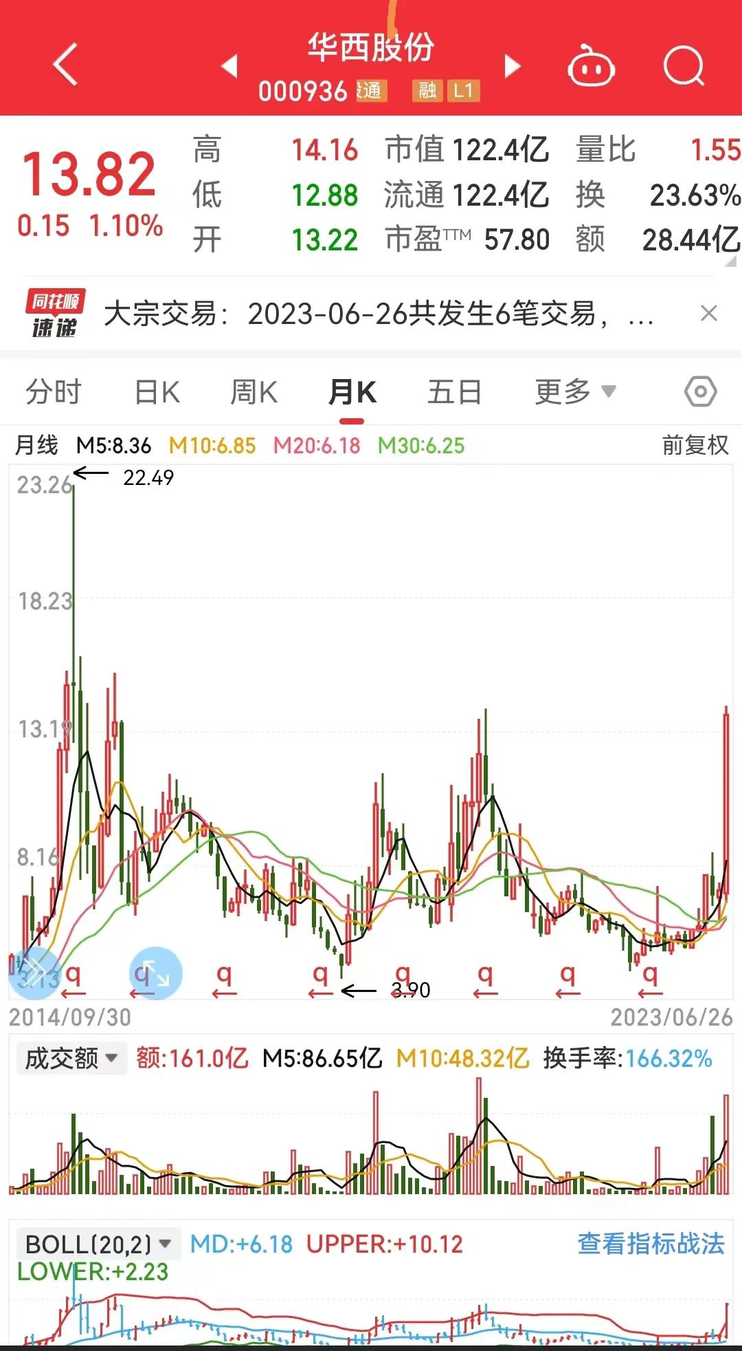 从二级市场表现来看,在近年来,华西股份股价曾一度在5元价位波动,即使有小幅上涨,涨幅也并不突出。但自从6月9日起至6月26日,公司股价在短短的10个交易中暴涨95.2%,股价从7.08元/股涨至13.82元/股,期间出现5个涨停板。