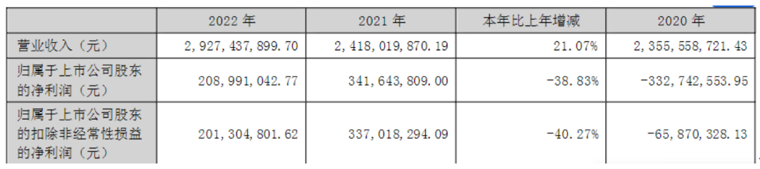 然而,到了2020年,公司扣非后净利润骤降,亏损6587.03万元。到了2021年,公司扣非后净利润回升至3.37亿元。截至2022年,公司扣非后净利润再次下降至2.13亿元。
