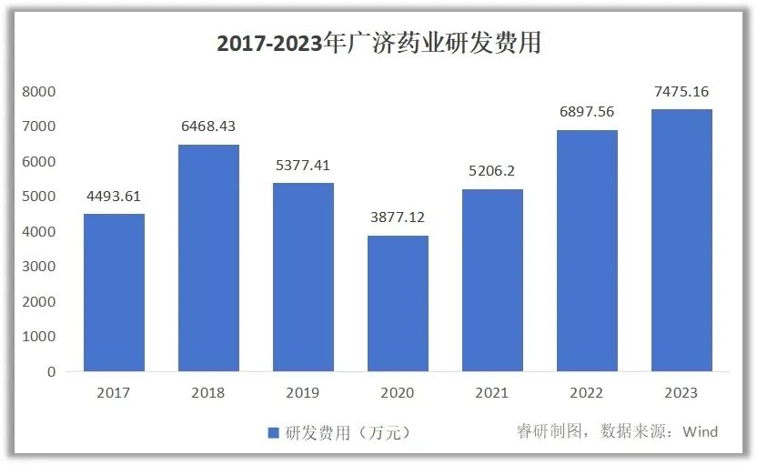 近年来,广济药业坚持加大研发投入,2023年研发费用达到7475.16万元,同比增长8.4%。2020年至2023年,广济药业研发费用逐年递增,见下图。