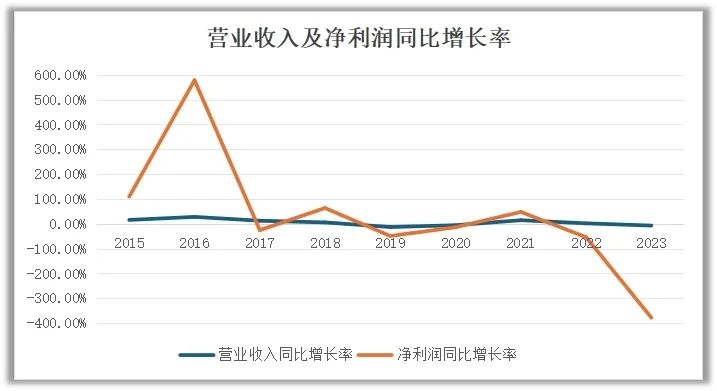 回望过去10年,广济药业营业收入除2019、2020及2023年受市场周期波动等影响呈现同比下降趋势,其余年份保持同比增长趋势;净利润同比变化波动较大,4个年度呈现同比增长趋势,6个年度呈同比下降趋势。