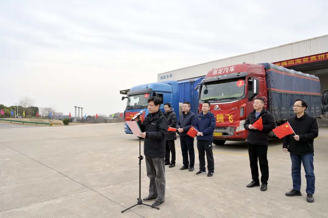 上午9时许,活动现场彩旗飘扬,在激昂的鼓乐声中,悬挂祝福标语的货运车辆整齐列队。随着胡立刚宣布"出发",礼炮齐鸣,在场职工挥舞着红色旗帜,目送满载医药制剂、原料药等公司产品的车队缓缓驶出大门,分头发往全国各地和物流港口,为节后国内外医药市场供应提供坚实保障。