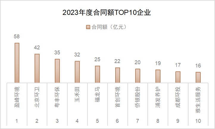 具体到企业成交业绩,今年上半年TOP10榜单也颇为亮眼:盈峰环境首次实现半年度年化额突破10亿元,北京环卫实现强势复苏,两家终端处理企业“首创环境”和“粤丰环保”首次进入环卫服务半年度TOP10,2023年4月7日成立的“最强新人”光和城市服务中标超12亿超级大单。