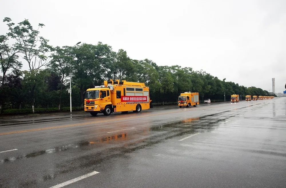 紧接着,在张良宝铿锵有力的号令下,发车仪式正式启动。68台盈峰环境应急排涝装备宛如一支气势磅礴的“防汛铁军”,整齐划一地驶出园区,奔赴防汛抗洪一线。