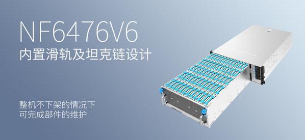 NF6476V6采用免工具拆卸的设计,针对部分结构件进行优化,大多数部件可实现不用任何工具便可进行拆卸,极大缩短了运维的时间和难度除了部件的优化,在IO的出线上增加前出线的方式,改变传统IO部署需预留空间让线缆从机柜后方绕出的现状,避免线缆全部堆积在机器后方,提高机房空间利用率,而且机房运维人员可以在冷通道操作,降低了运维难度内置滑轨及坦克链设计,让运维人员在整机不下架的情况下,完成对部件的维护。