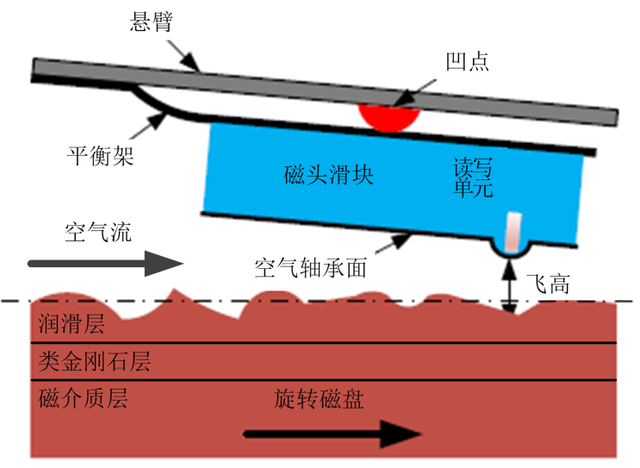 磁头、磁盘和空气轴承共同构成了硬盘头盘界面( Head Disk Interface, HDI),作为硬盘执行读写数据的工作环境,其实时状态的好坏决定了硬盘能否正常为用户提供服务。头盘空间和飞行高度不仅影响信号的强度和分辨率,而且与硬盘的磁存储密度有着密切关系,随着磁存储密度的提高,头盘空间和飞行高度也相应地减小,如今通过TFC(Thermal Fly-height Control Technology,热飞高控制技术)已经能将头盘空间控制在1nm 左右,在极小空间,磁头磁盘难免会发生碰撞接触。