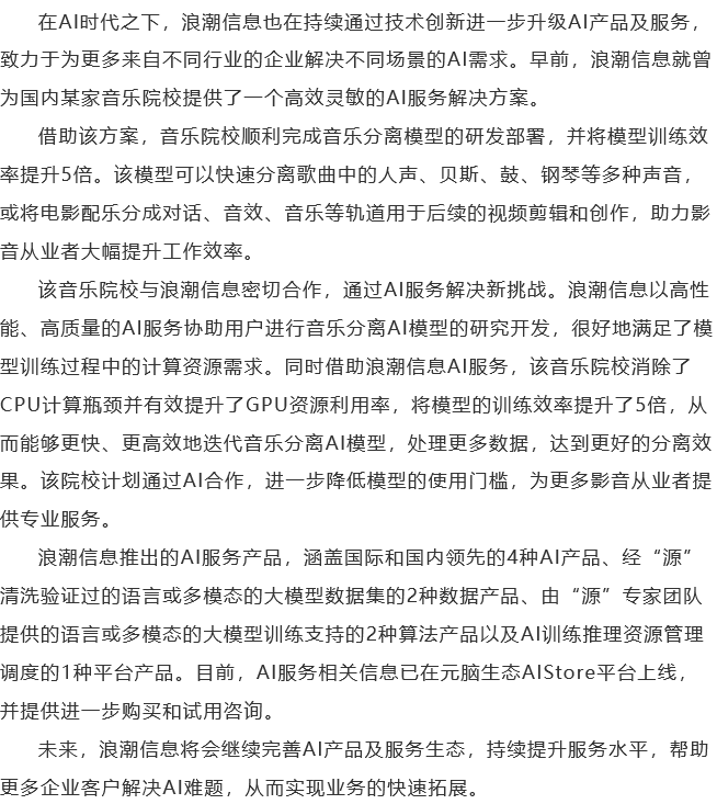 浪潮信息创新AI服务 为音乐院校提供AI模型方案