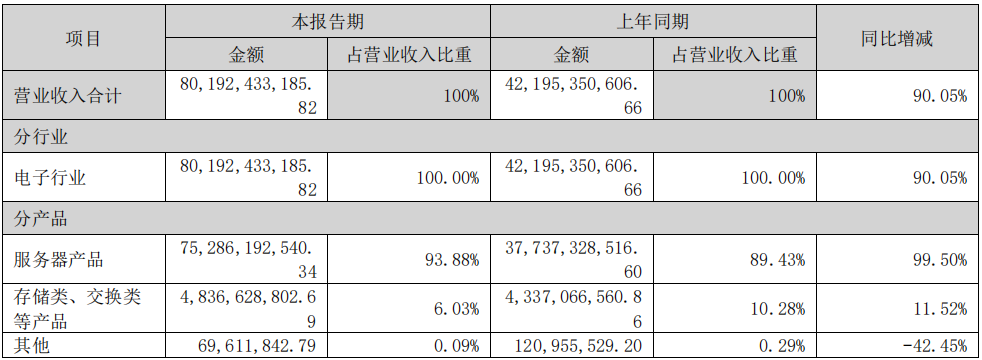 由于客户需求增加,服务器销售增长,浪潮信息上半年营收同比增超90%,扣非净利润同比增长超60%。