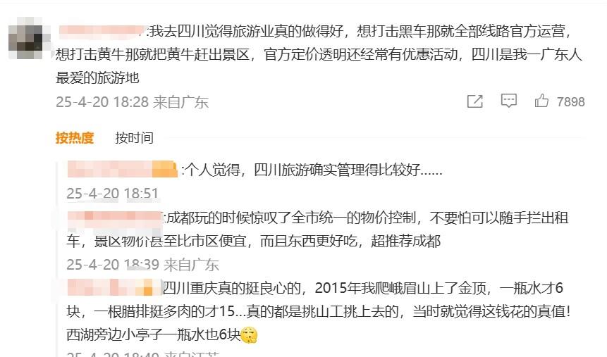 有网友以四川为例,认为在完善交通和景区配套设施的同时,打击强制消费、“宰客”现象、“黑导游”等现象,是争取游客的“基本操作”:“我去四川觉得旅游业真的做得好,想打击黑车那就全部线路官方运营,想打击黄牛那就把黄牛赶出景区,官方定价透明还经常有优惠活动,四川是我一广东人最爱的旅游地。”