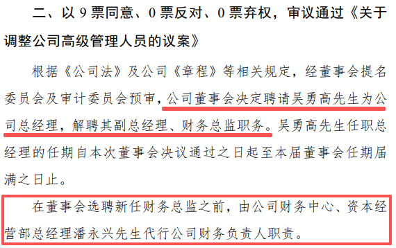 2025年8月,公司发布的公告显示,董事会决定聘请吴勇高先生为公司总经理,解聘其副总经理、财务总监职务。在董事会选聘新任财务总监之前,由公司财务中心、资本经营部总经理潘永兴先生代行公司财务负责人职责。