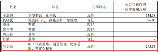 根据该公司2024年年报披露,吴勇高先生2024年度从公司获得的税前报酬总额为245.83万元。