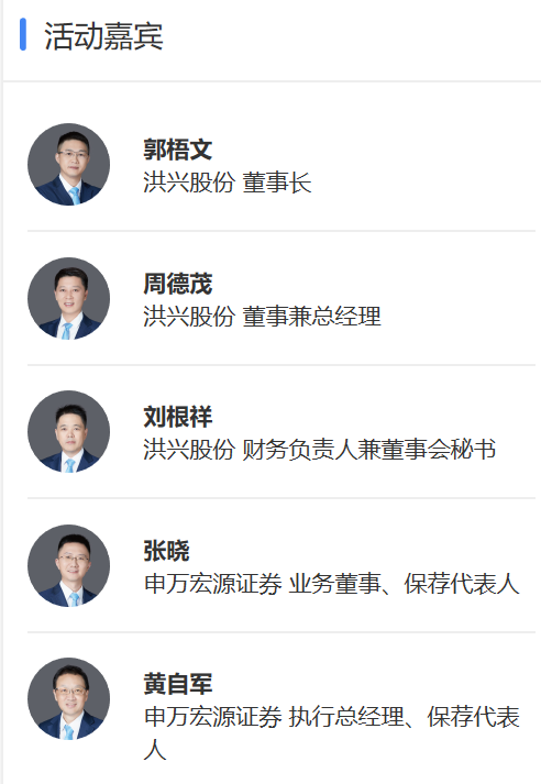 全景网7月7日讯洪兴股份(001209)首次公开发行股票网上路演7月7日在全景网成功举行。洪兴股份董事长郭梧文等公司管理层主要成员和本次发行的保荐机构(主承销商)申万宏源证券相关人员出席了此次路演活动,并与投资者进行实时在线交流。