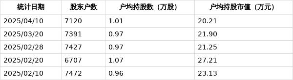 从4月16日公开信息显示,双枪科技截至2025年4月10日公司股东户数为7120户,较上期(2025年3月20日)减少271户,降幅为3.67%,变化不大。