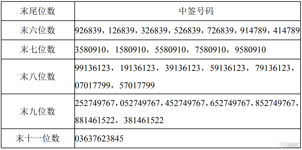 凡参与中旗转债网上申购的投资者持有的申购配号尾数与上述号码相同的,则为中签号码。中签号码共有77,377个,每个中签号码只能认购10张中旗转债。