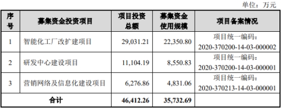 青岛食品于9月29日披露的招股说明书显示,公司拟募集资金3.57亿元,分别用于智能化工厂改扩建项目、研发中心建设项目、营销网络及信息化建设项目。