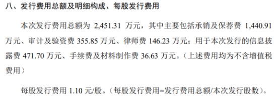 青岛食品本次发行费用总额为2451.31万元,其中保荐机构中信证券股份有限公司获得承销及保荐费1440.91万元。