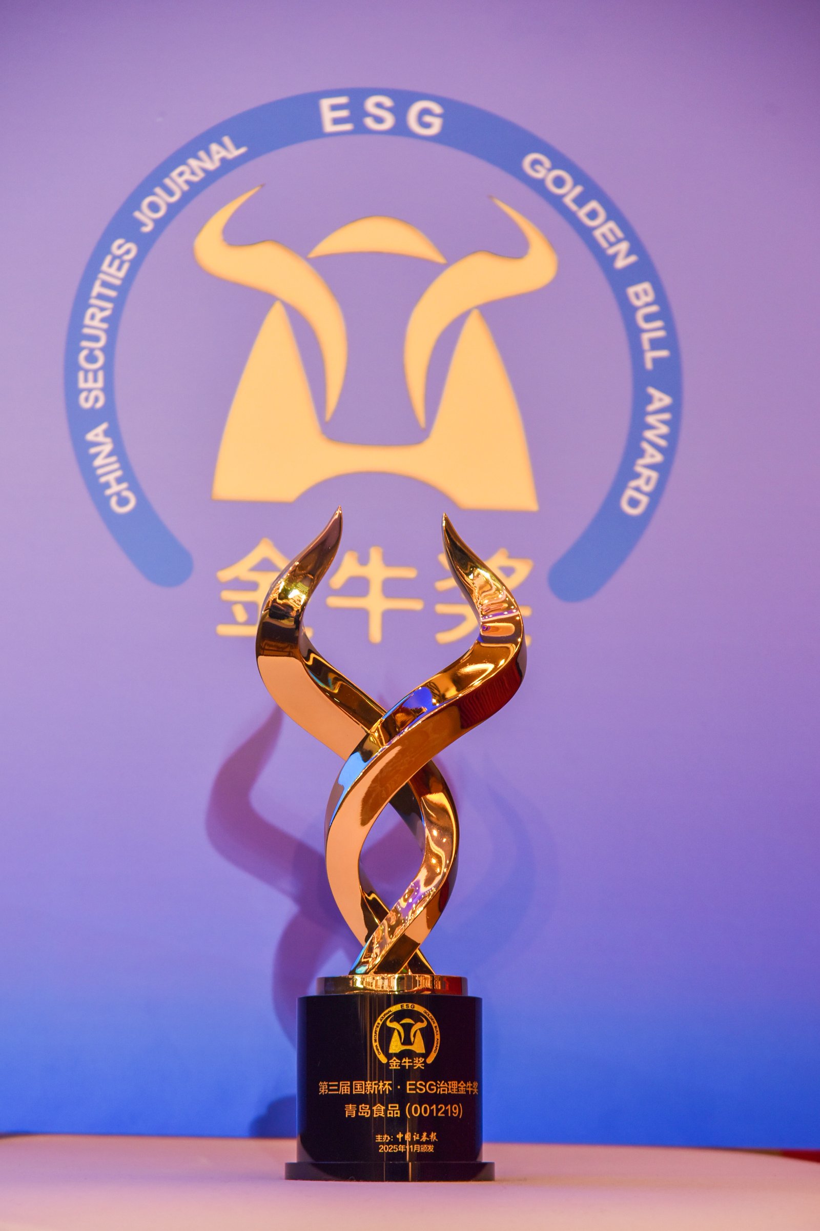 11月26日,以“治善致远绿动未来”为主题的2025年金牛企业可持续发展论坛暨第三届国新杯·ESG金牛奖颁奖典礼在江苏苏州举行。本次大会由中国证券报、 中国国新控股有限责任公司 主办, 国新证券 承办, 苏州工业园区城市发展研究院 全面战略支持。备受瞩目的ESG金牛奖榜单揭晓, 青岛食品 荣获“ESG治理金牛奖”。