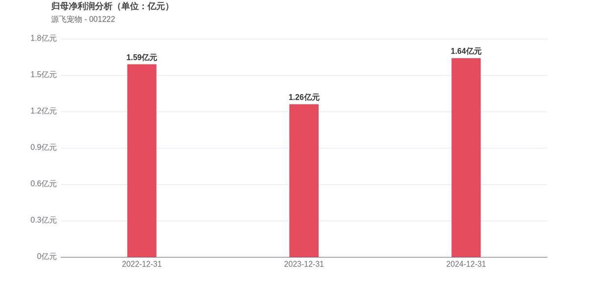 源飞宠物上市的2022年,当年实现归母净利润1.59亿元。截至最新完整财年的2024年,公司实现1.64亿元的归母净利润,近年累计增长了3.62%。这3年间,源飞宠物无一年份出现亏损。