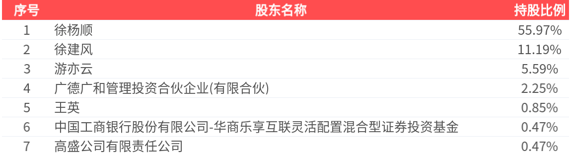 公司股东户数为6929户,前七大股东持股数量为5733.52万股,占总股本比例为76.79%,前十大股东持股情况如下: