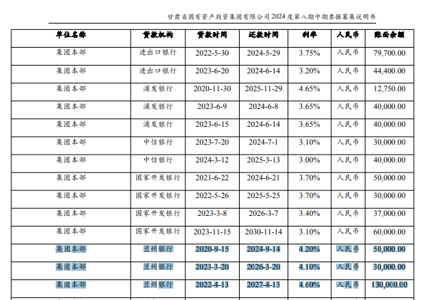 此外,在核查意见中没有披露的2025年预计授信额度的兰州银行十大股东之一甘肃省国有资产投资集团有限公司,在其披露的《2024年度第八期中期票据募集说明书》中披露,截止到2024年3月底,兰州银行给予该公司集团本部及其子公司云天酒店、电投长乐发电有限公司、省投置业集团等的贷款余额累计约32.65亿元,已经远远超过了此前公告的关联交易预计额度。
