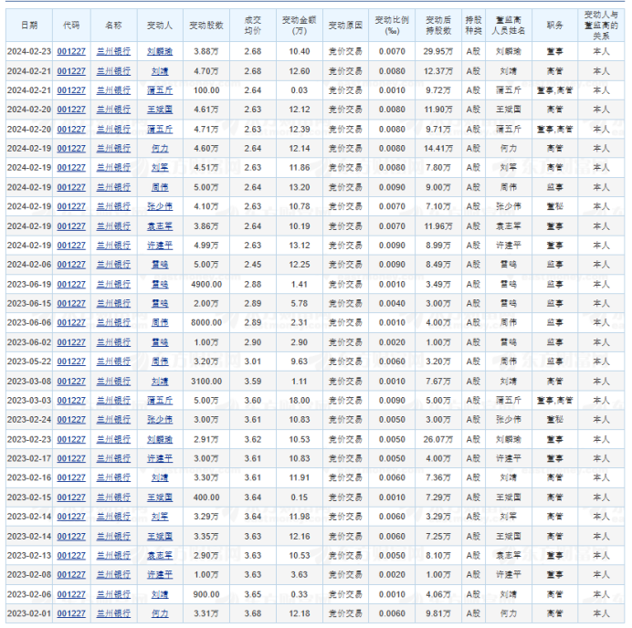 相较于目前的股价,比如兰州银行的时任行长蒲五斤,就浮亏了不少,其他高管的增持普遍也是浮亏状态。
