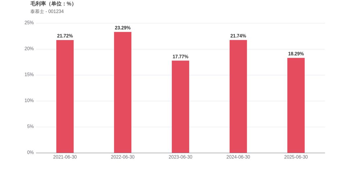 从反映盈利质量的指标来看,泰慕士净利率由2024年上半年的11.61%下滑至7.81%,毛利率从21.74%降至18.29%,净资产收益率同比下降2.47个百分点至3.23%,显示出公司盈利能力有所承压。