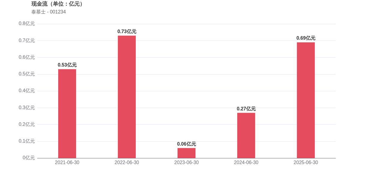 在经营稳健性方面,泰慕士面临存货周转效率下降的挑战,存货周转天数增至93.66天,同比增长16.88%,表明公司库存管理面临一定压力。经营活动产生的现金流净额为0.69亿元,较上年同期的0.27亿元有所改善。此外,2025年上半年的资产负债率为23.59%,同比微增0.25个百分点。