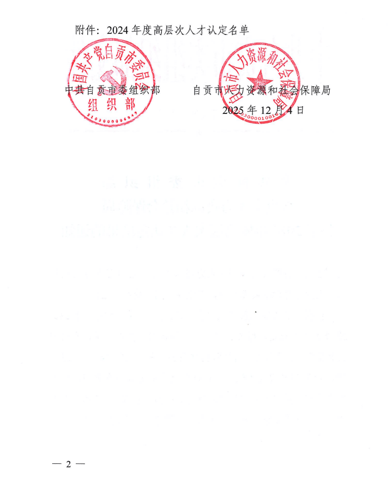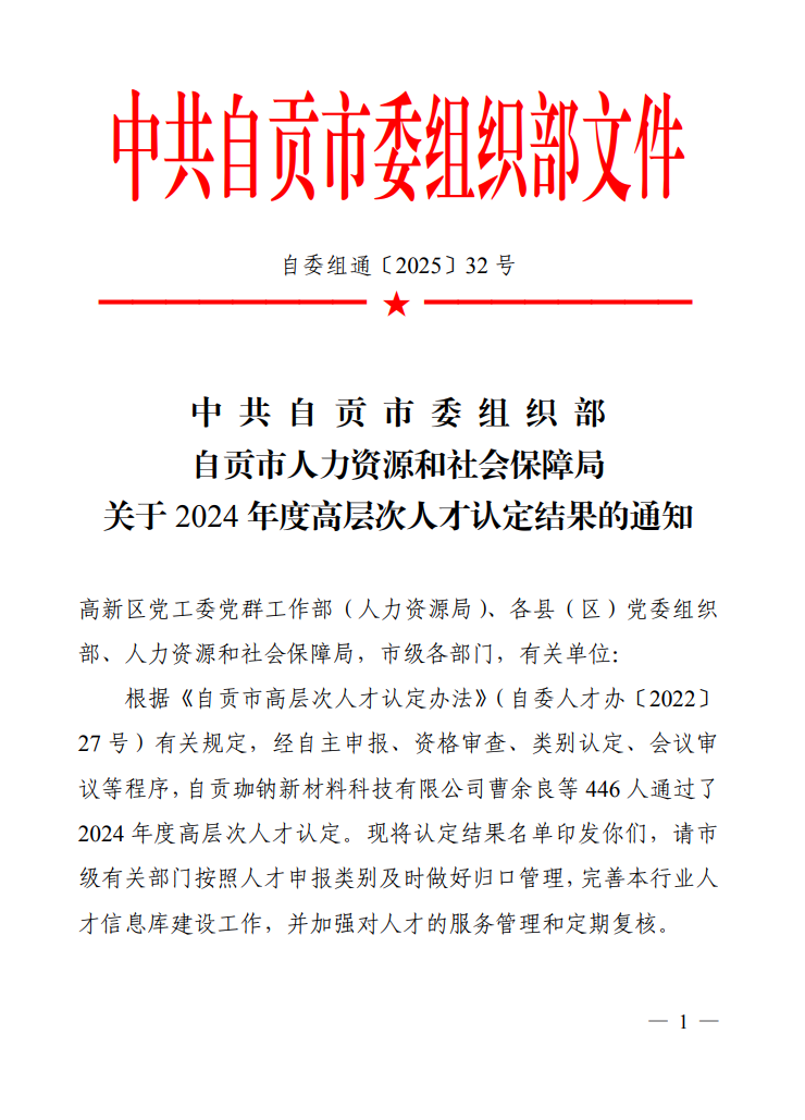 近日,中共自贡市委组织部、 自贡市人力资源和社会保障局 正式公布2024年度高层次人才认定结果, 运机集团 董事长吴友华、总经理吴正华获评市级“领军人才”;宋惜飞、陈智奎、胡勇获评“高级人才”;邹金桂、曹旻昊获评“骨干人才”。