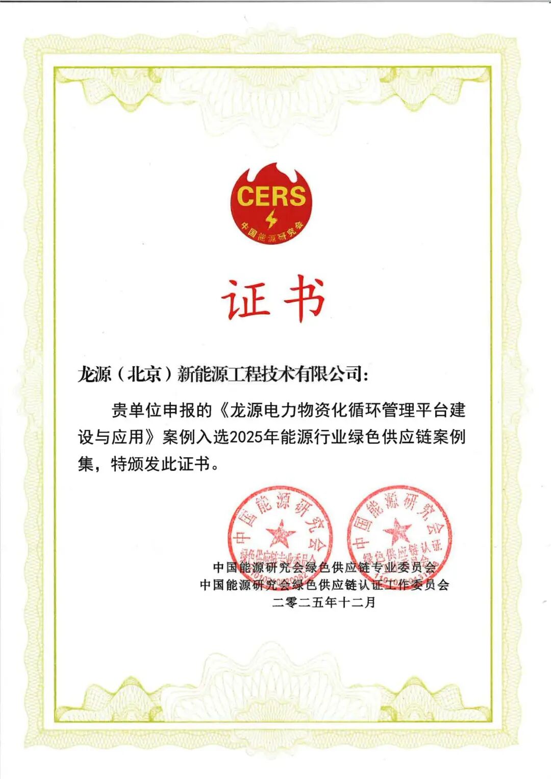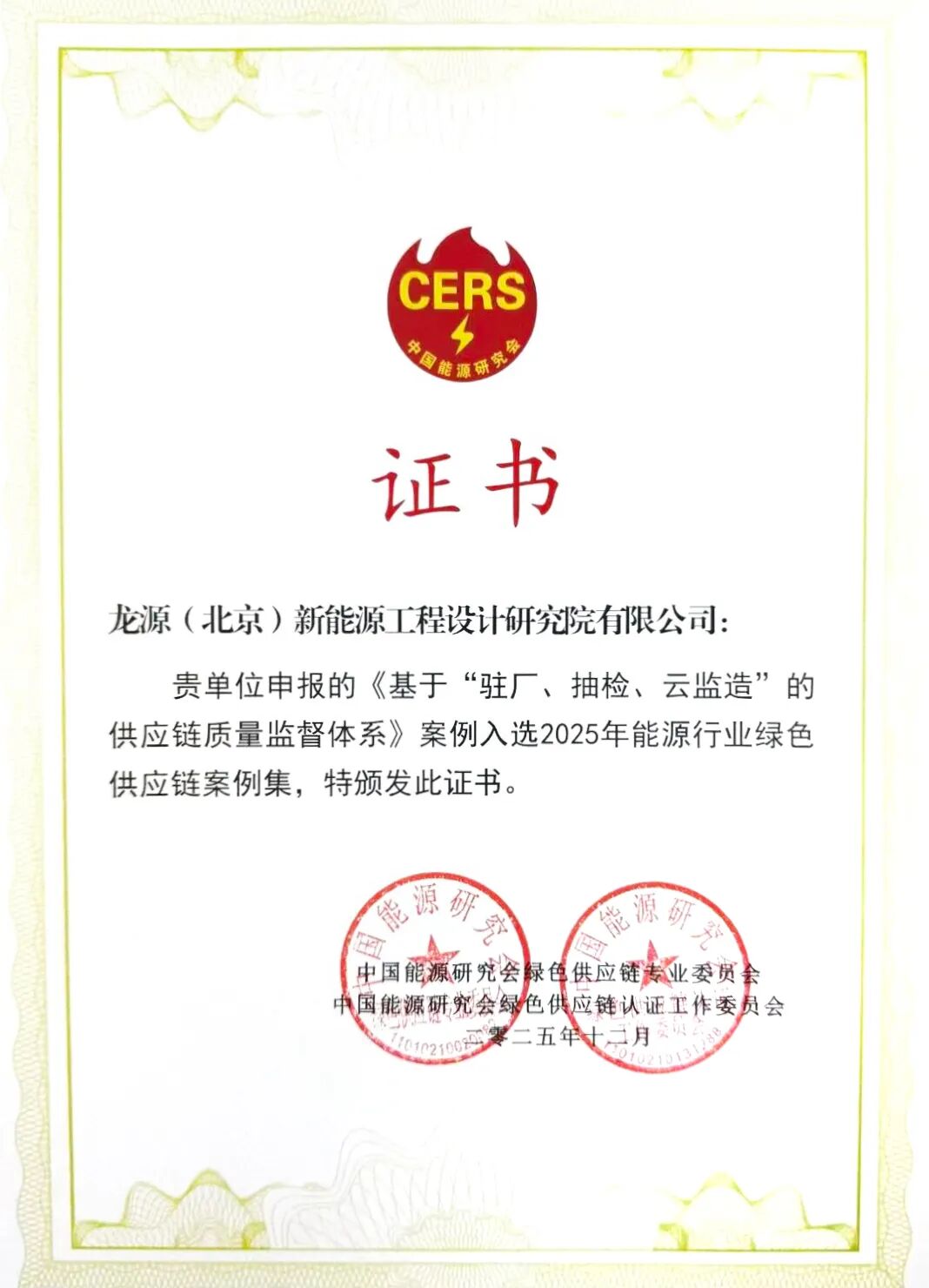 近日,中国能源研究会公布2025年能源行业绿色供应链案例集入选名单,龙源电力工程技术公司《龙源电力物资化循环管理平台建设与应用》、龙源电力设计院《基于“驻厂、抽检、云监造”的供应链质量监督体系》成功入选2025年能源行业绿色供应链案例集,为新能源行业绿色转型提供了创新示范。