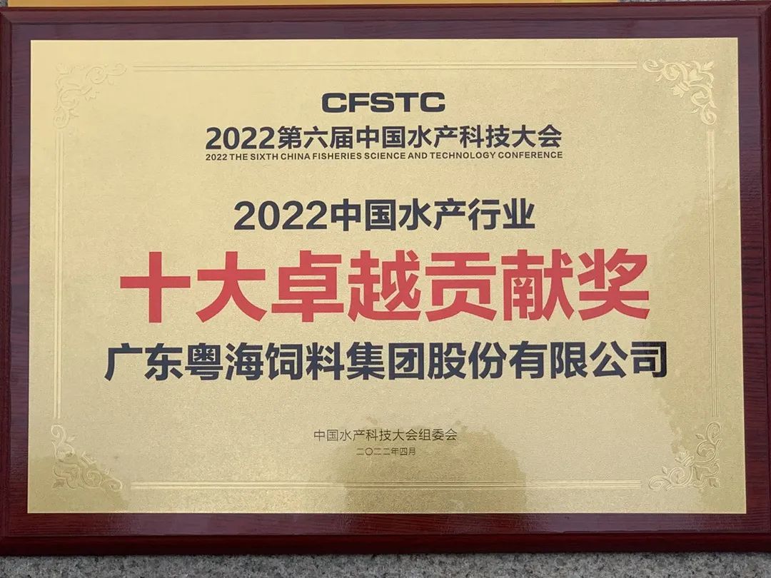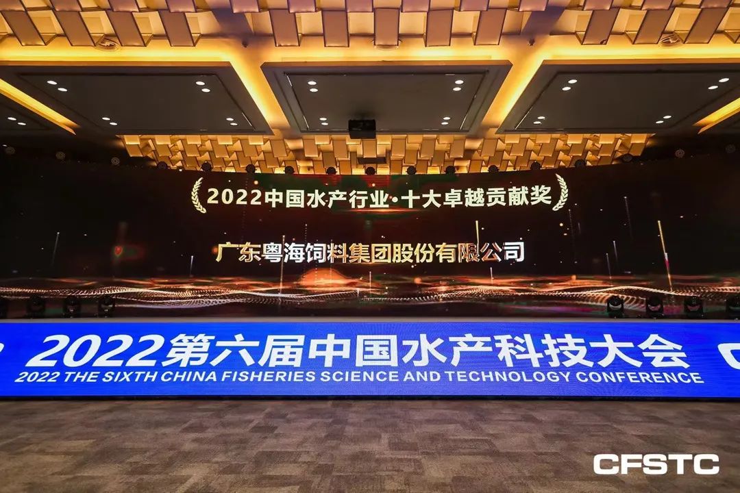 ▲广东粤海饲料集团荣获“2022中国水产行业十大卓越贡献奖”