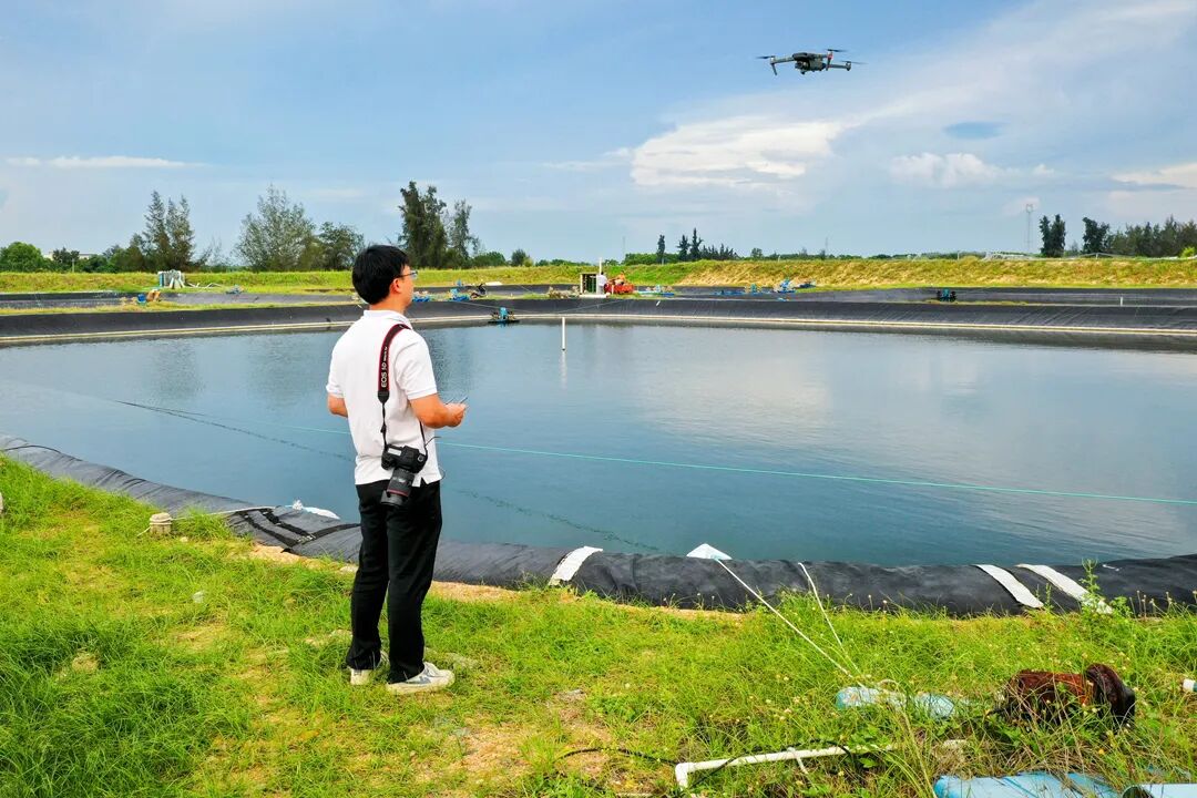▲谢镇伟同志在塘头航拍记录当地水产养殖场景,用于行业相关宣传