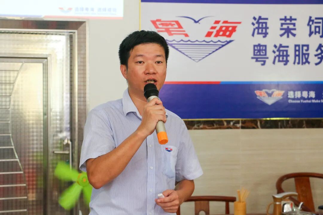 ▲欧大耀同志,2007年毕业于广东海洋大学农学院动物科学(营养与饲料)专业,从事水产养殖(南美白对虾、罗非鱼、草鱼类)多年。2018年入职担任集团旗下湛江市海荣饲料有限公司技术服务经理一职,目前主要负责水产养殖技术指导、水产养殖病害预防及处理、技术下乡推广、培训饲料业务员及养殖户等,广受广大从业人员认可。