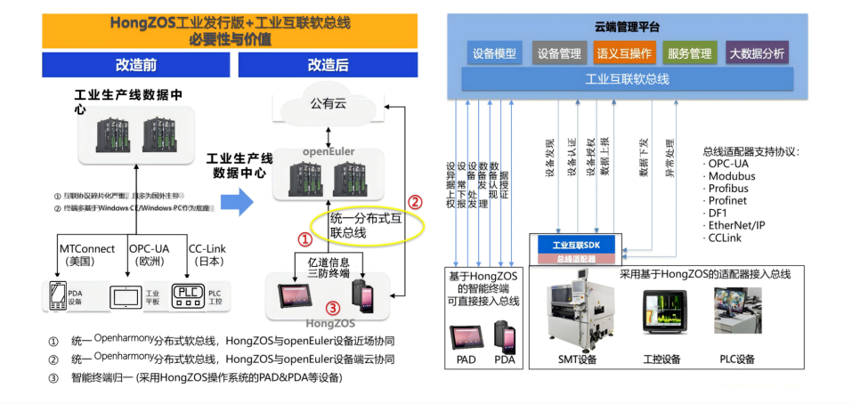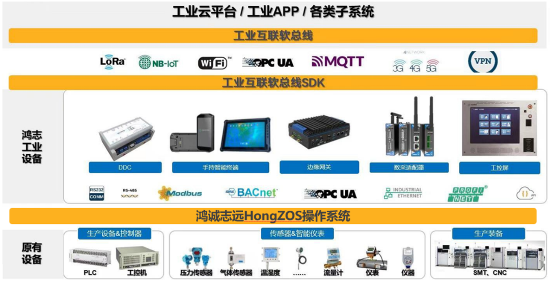 为端侧不同的工业设备提供统一的数字底座,基于HongZOS实现跨设备、跨平台的无缝集成,消除异构系统和设备导致的信息孤岛,实现生产环节的全面互联。