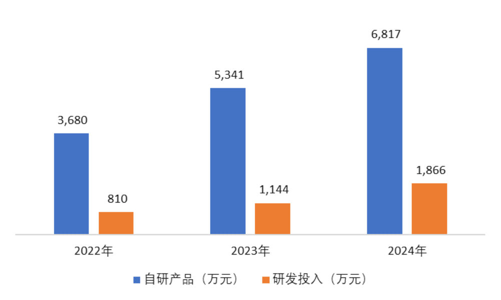 自研产品也是润贝航科近年来增长最亮眼的业务,两年时间接近翻番。当然我们也应理性看到,自研产品2024年营收不过6,817万元,2024年研发投入也只有1,866万元。