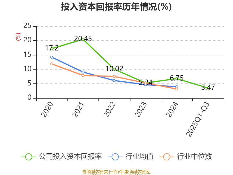 盈利能力方面, 2025年前三季度公司加权平均净资产收益率为4.63%,同比下降1.33个百分点。公司2025年前三季度投入资本回报率为3.47%,较上年同期下降0.99个百分点。