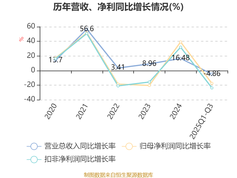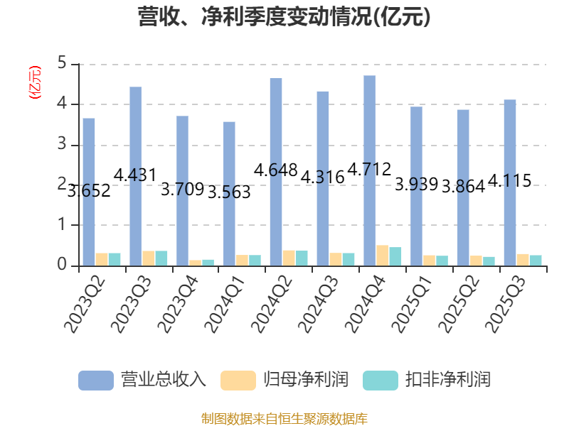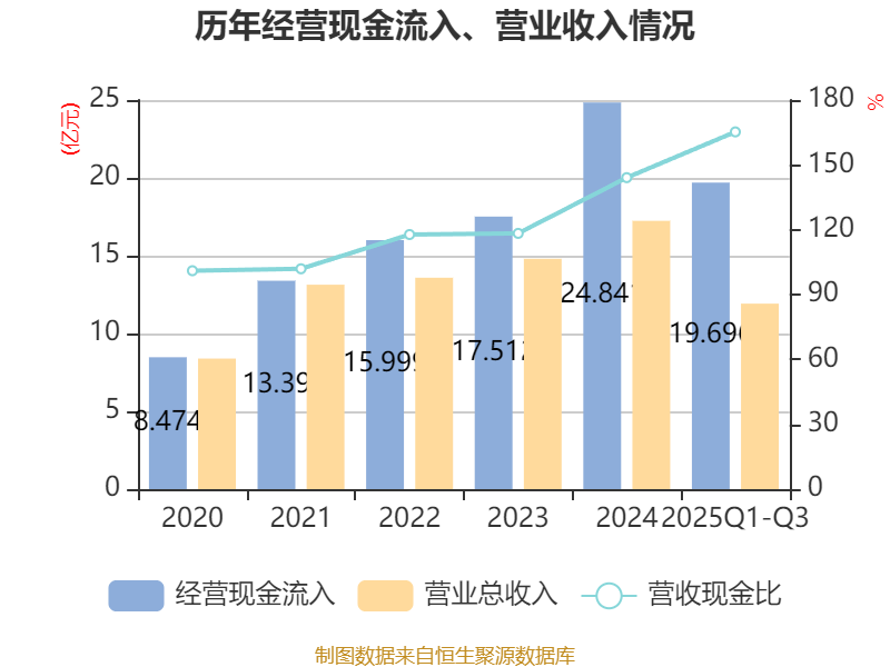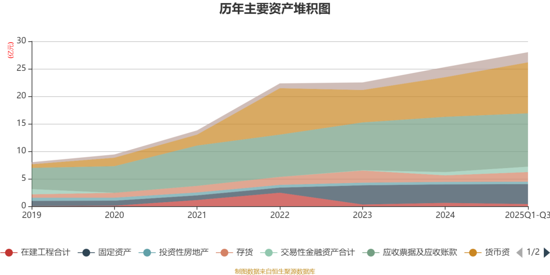资产重大变化方面,截至2025年三季度末,公司应收票据及应收账款较上年末减少3.45%,占公司总资产比重下降5.08个百分点;货币资金较上年末增加28.41%,占公司总资产比重上升4.56个百分点;存货较上年末增加46.04%,占公司总资产比重上升1.51个百分点;交易性金融资产合计较上年末增加69.37%,占公司总资产比重上升1.23个百分点。