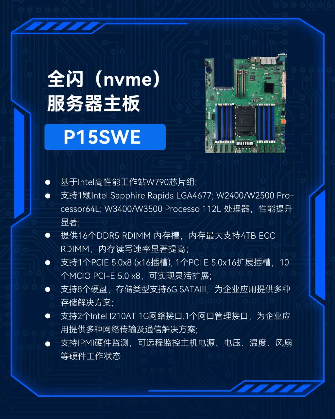 无论是高性能计算、创意设计、大数据存储处理、云计算等领域,智微智能的高性能服务器主板P15SWA-BMC、全闪(nvme)服务器主板P15SWE、超频高性能服务器主板P15SWN,都能提供强大而灵活的解决方案,助力用户突破性能瓶颈,实现更高效、更可靠的任务处理和数据计算。