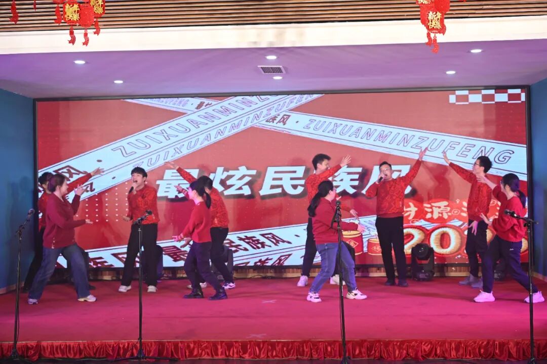 大会在激昂奋进的舞蹈《战马的宏图》中正式拉开帷幕,员工们自编自导的文艺节目接连上演,精彩不断。歌舞《舞韵五洲》、舞台剧《钢魂》、配音秀《开年会喽》、歌舞《上春山》创意十足;独唱《骏马奔驰保边疆》、独舞《盛世欢歌》展现了员工的个人才华;深情朗诵《南矿征途,三转一优赋》、《匠心铸魂,创新领航》、《百炼铸匠心》道出了南矿人的心声与追求;合唱《少年的模样》、《最炫民族风》、《我相信》、《明天会更好》、《我的中国心》、《没有共产党就没有新中国》等经典曲目,全方位展现了南矿人积极昂扬、多才多艺的精神风貌。