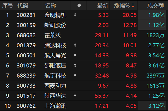 7月26日,商业航天概念表现强势,截至9时49分,腾达科技5连板,金明精机20%幅度涨停,腾达科技、航天晨光涨停,新研科技、霍莱沃涨超10%。