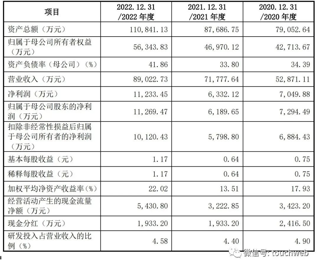 华纬科技2020年、2021年、2022年营收分别为5.29亿元、7.18亿元、8.9亿元;净利分别为7050万元、6332万元、1.12亿元;扣非后净利分别为6884万元、5798.8万元、1.01亿元。