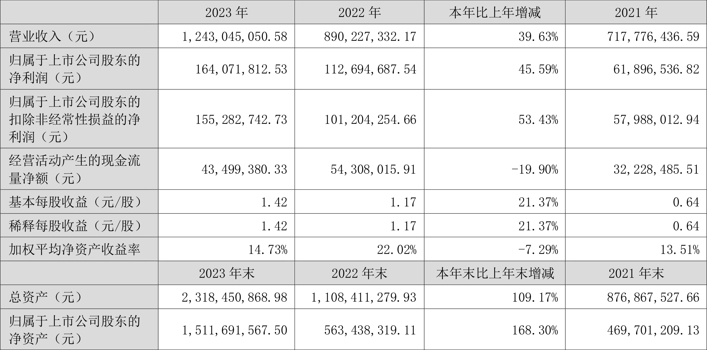 华纬科技(001380)4月9日披露2023年年报。2023年,公司实现营业总收入12.43亿元,同比增长39.63%;归母净利润1.64亿元,同比增长45.59%;扣非净利润1.55亿元,同比增长53.43%;经营活动产生的现金流量净额为4349.94万元,同比下降19.90%;报告期内,华纬科技基本每股收益为1.42元,加权平均净资产收益率为14.73%。公司2023年年度利润分配预案为:拟向全体股东每10股转4.2股派3元(含税)。