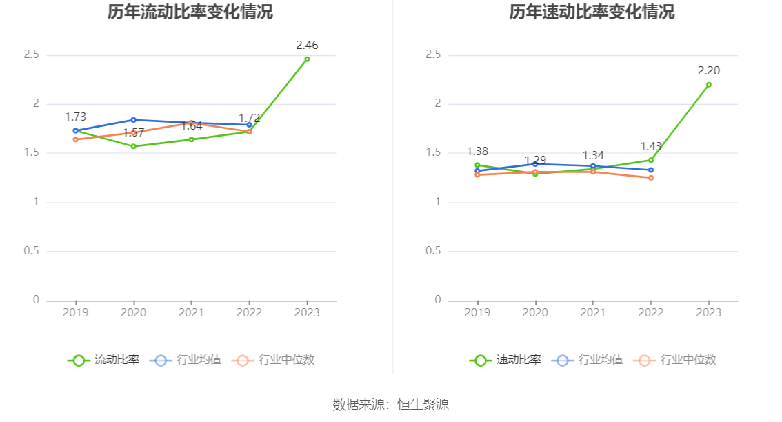 2023年,公司流动比率为2.46,速动比率为2.20。