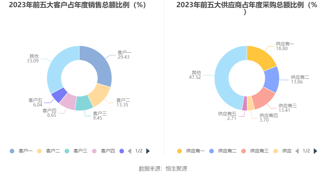 报告期内,公司前五大客户合计销售金额8.32亿元,占总销售金额比例为66.91%,公司前五名供应商合计采购金额5.24亿元,占年度采购总额比例为52.48%。