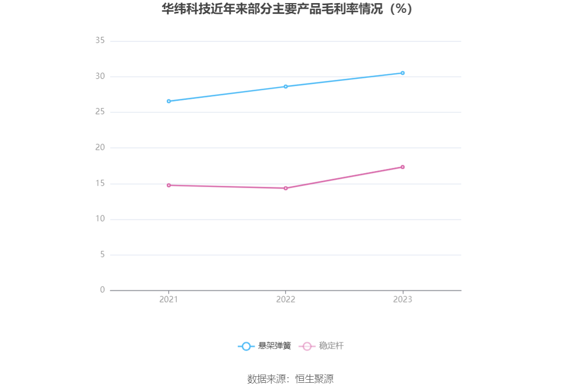 分产品看,悬架弹簧、稳定杆2023年毛利率分别为30.51%、17.32%。
