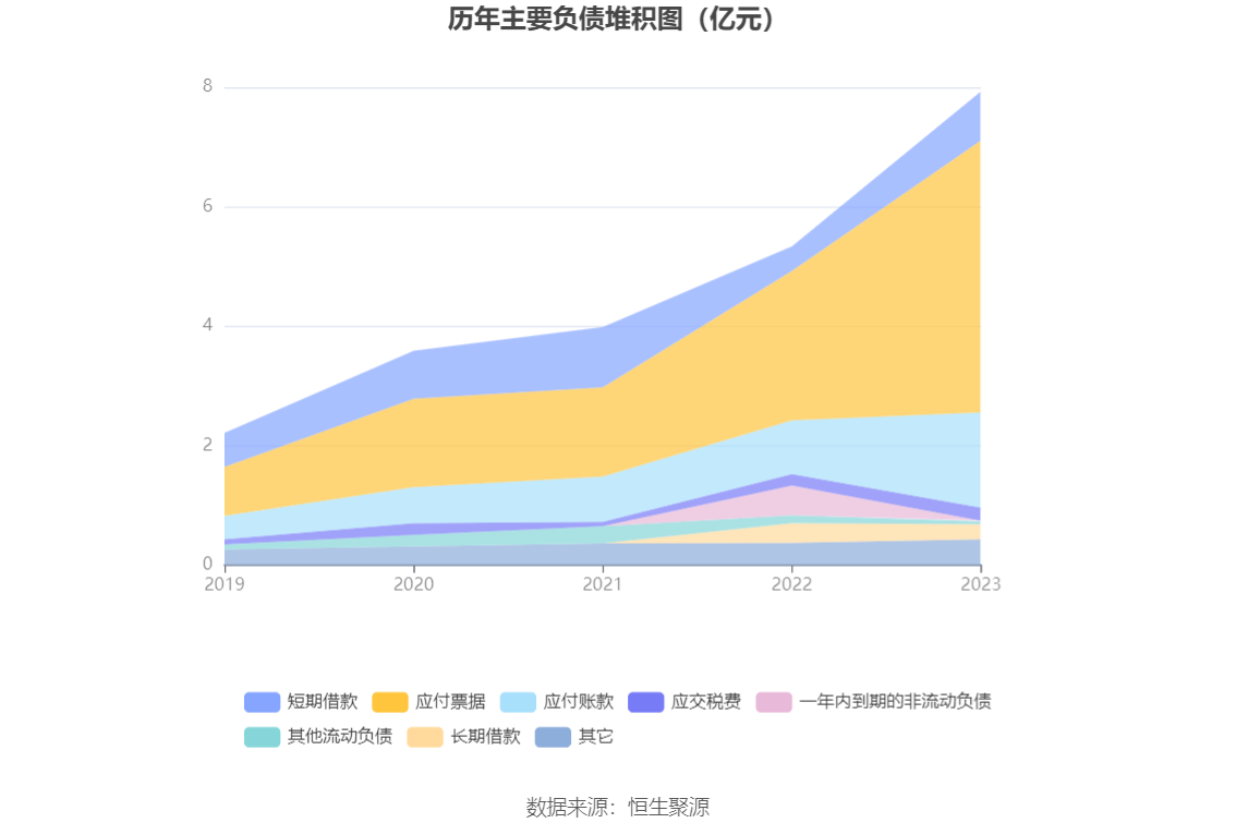 负债重大变化方面,截至2023年年末,公司应付票据较上年末增加81.94%,占公司总资产比重下降2.93个百分点;应付账款较上年末增加76.13%,占公司总资产比重下降1.29个百分点;一年内到期的非流动负债较上年末减少98.02%,占公司总资产比重下降4.49个百分点;短期借款较上年末增加99.78%,占公司总资产比重下降0.16个百分点,主要系公司开立信用证。