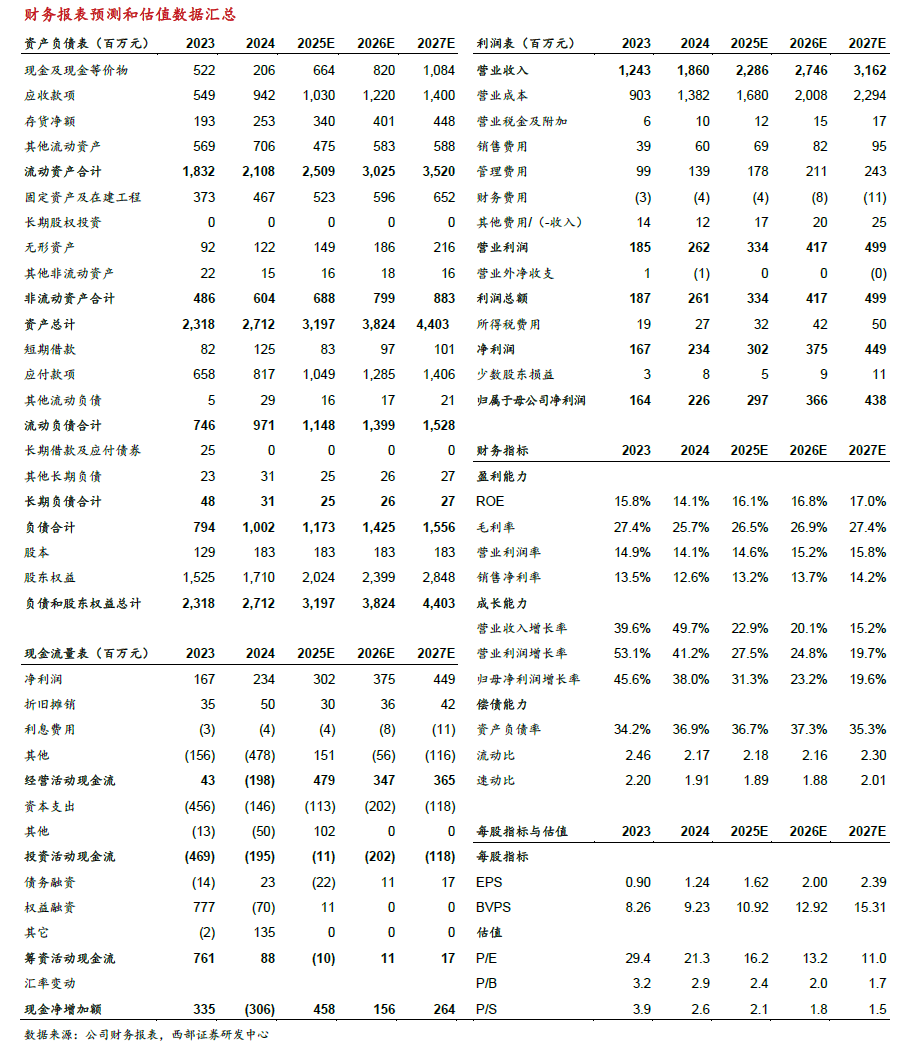 事件:公司发布2024年报,全年实现营收18.60亿元,同比+49.7%;归母净利润2.26亿元,同比+38%;扣非归母净利润2.13亿元,同比+37.2%。Q4营收6.26亿元,同/环比+57.8%/+18.8%;归母净利润7292万元,同环比+34.0%/+1.0%;扣非归母净利润6924万元,同环比+23.4%/+1.3%。